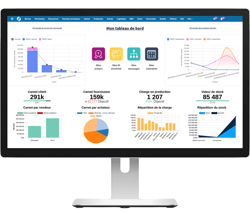 Contrairement aux GPAO traditionnelles, conçues pour des sites fixes, Open-Prod a été développé pour s’adapter aux besoins : ses modules peuvent être activés ou reconfigurés selon les contraintes de production, la cadence ou le type de produit. La plateforme centralise les données dans une base unique, permettant aux équipes de suivre :