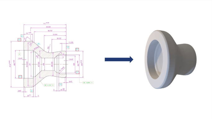 L’un des principaux freins à la pleine adoption de la 3D est la disponibilité de modèles 3D des pièces d’équipement industriel. L’immense majorité des pièces est représentée sous forme de dessins techniques. Ceux-ci doivent être traités par un ingénieur pour être reconstruits sous forme d’un modèle 3D. Il faut en moyenne une journée pour effectuer cette tâche.