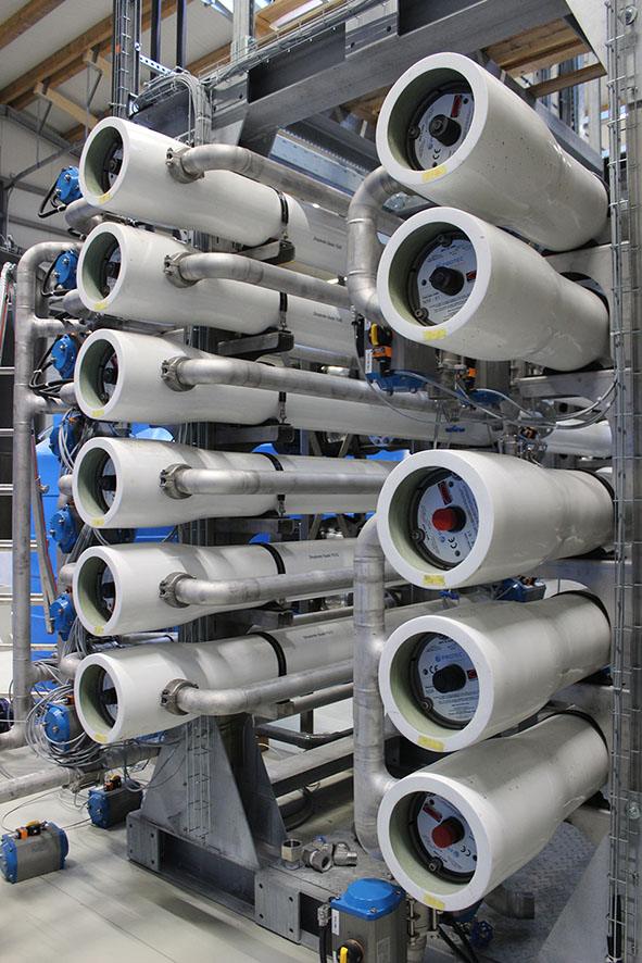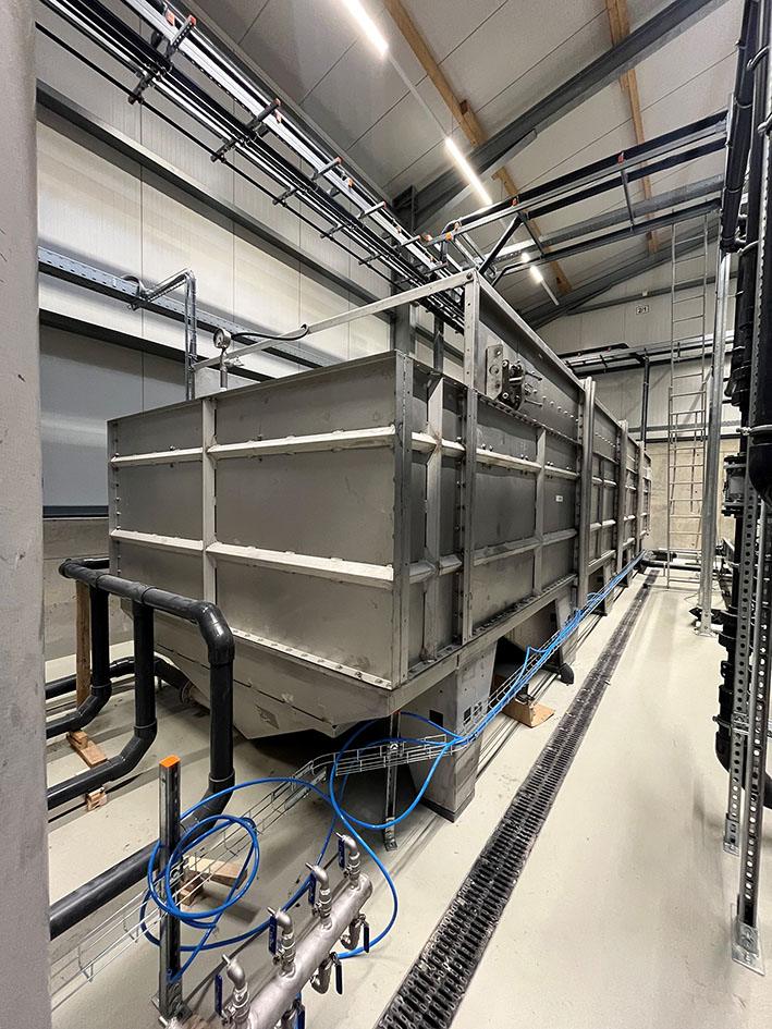La phase liquide passe ensuite dans des cuves de décantation, où les petites particules et les matières en suspension sont séparées. Les particules solides restantes sont éliminées dans un filtre fin. Ensuite, le système fait passer le filtrat par une osmose inverse en trois étapes, afin de séparer les sels et les nutriments. L’engrais liquide et riche en azote qui en résulte ne représente plus qu’un quart du volume initial.