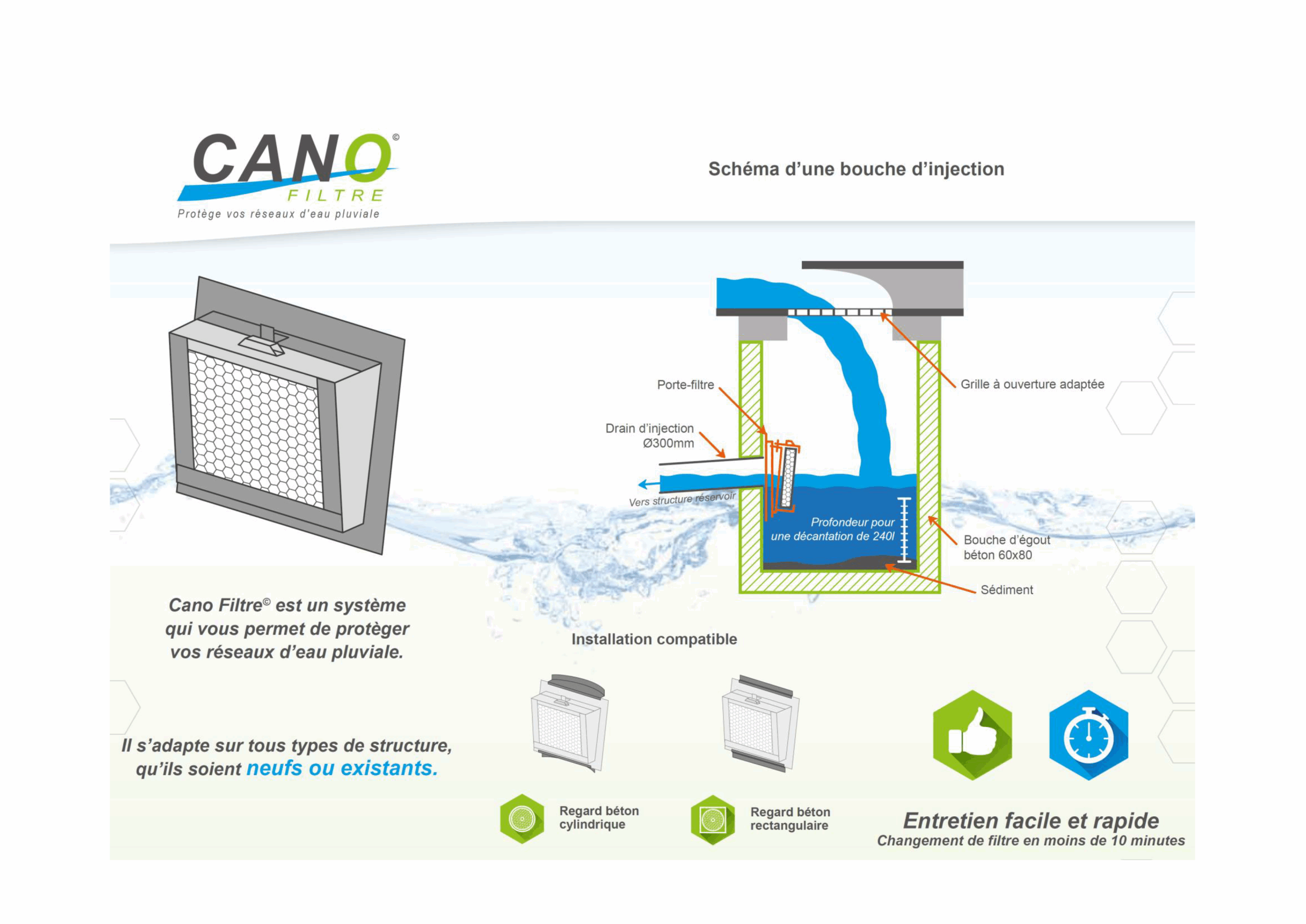 Le concept du CANOFILTRE rompt avec cette approche en proposant une dépollution à la source, directement intégrée dans les regards béton des bouches d’égout. L’innovation réside dans sa capacité à transformer un simple regard de collecte en une unité de traitement primaire, limitant ainsi la propagation des polluants dans le réseau et les bassins de traitement en aval.