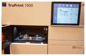 Particulièrement adapté aux alliages absorbants peu le rayonnement laser comme le cuivre, cet équipement permet, grâce à la longueur d’onde spécifique de son laser, de les fusionner. Ainsi, il est possible d’élaborer des pièces qui mettent parfois des semaines à être fabriquées par l’industrie métallurgique. À titre d’exemple, le cuivre absorbe environ 3 fois plus l’énergie du laser « vert » à 515 nm de longueur d’onde de cet équipement, comparativement aux lasers infrarouges à 1060 nm couramment employés. Il résulte une bien meilleure qualité métallurgique, entre autres gains.