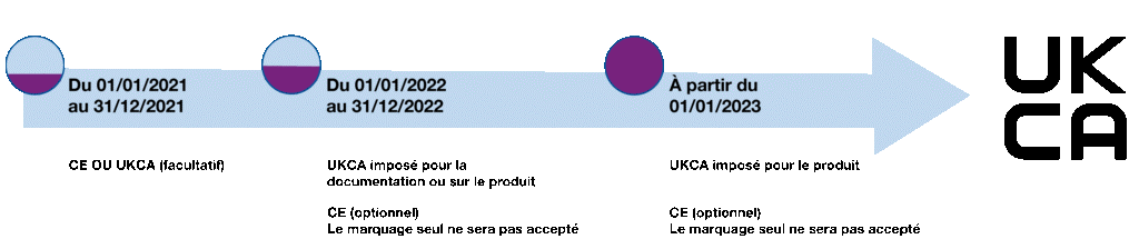 A cette date le seul marquage CE (valide jusqu’au 31/12/2022) ne sera plus accepté en Grande-Bretagne. Les produits devront être conformes aux réglementations anglaises.