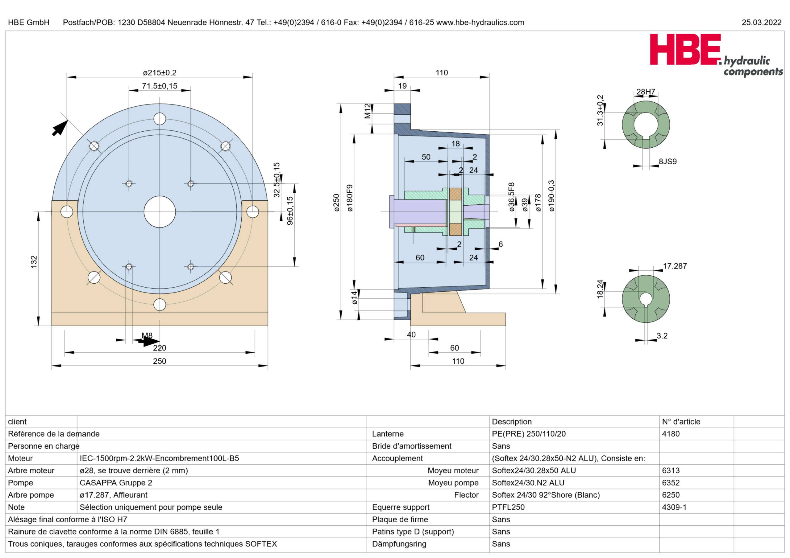 Le logiciel HBE permet de définir les composants (accouplement, lanterne et accessoires) selon les caractéristiques de l’application. Voici un exemple ci-dessous :