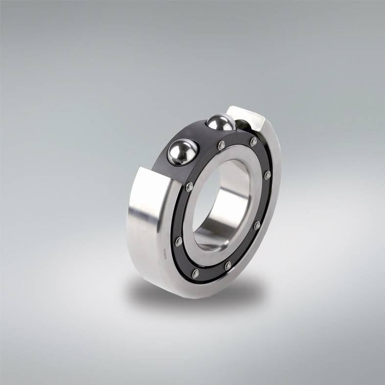 Une cage stable occupant la totalité du volume intérieur du roulement assure le guidage des éléments roulants (également en acier inoxydable), tandis que le matériau de la cage, un plastique fluoré autolubrifiant, assure un fonctionnement à faible frottement du roulement sans lubrification externe. En outre, ce plastique fluoré hautes performances est extrêmement résistant à l’usure et offre de bonnes propriétés à basse température à des vitesses pouvant atteindre 3600 tr/min. La cage est conçue en deux parties, les deux moitiés étant réunies par des rivets en acier inoxydable.