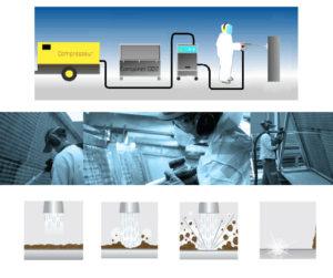 Les surfaces sont nettoyées et débarrassées de toutes traces de salissures, sans subir aucune dégradation. Sans eau ni solvant, cette technique est 2 à 4 fois plus rapide qu’un nettoyage classique, ne laissant aucun déchet secondaire. Écologique et performante, cette méthode à un cout de revient bien inférieur à celui du nettoyage classique industriel.