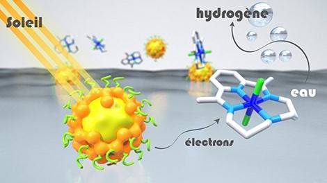 Ce dispositif “hybride” combine les excellentes propriétés d’absorption de la lumière visible et la stabilité des semi-conducteurs inorganiques à l’efficacité des catalyseurs moléculaires. En présence d’un excès de vitamine C, qui fournit les électrons au système, il montre une activité catalytique remarquable dans l’eau, la meilleure obtenue à ce jour avec des “quantum dots” sans cadmium. Les performances de ce système sont bien supérieures à celles obtenues avec un photosensibilisateur à base de ruthénium, grâce à la très grande stabilité de ses matériaux inorganiques, qui peuvent être recyclés plusieurs fois sans perte notable d’activité.