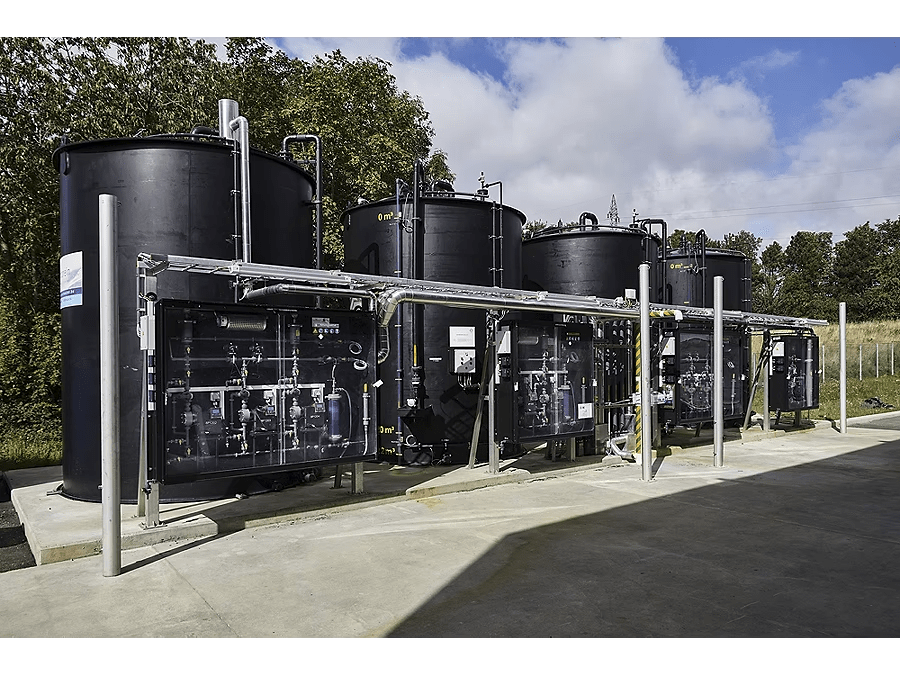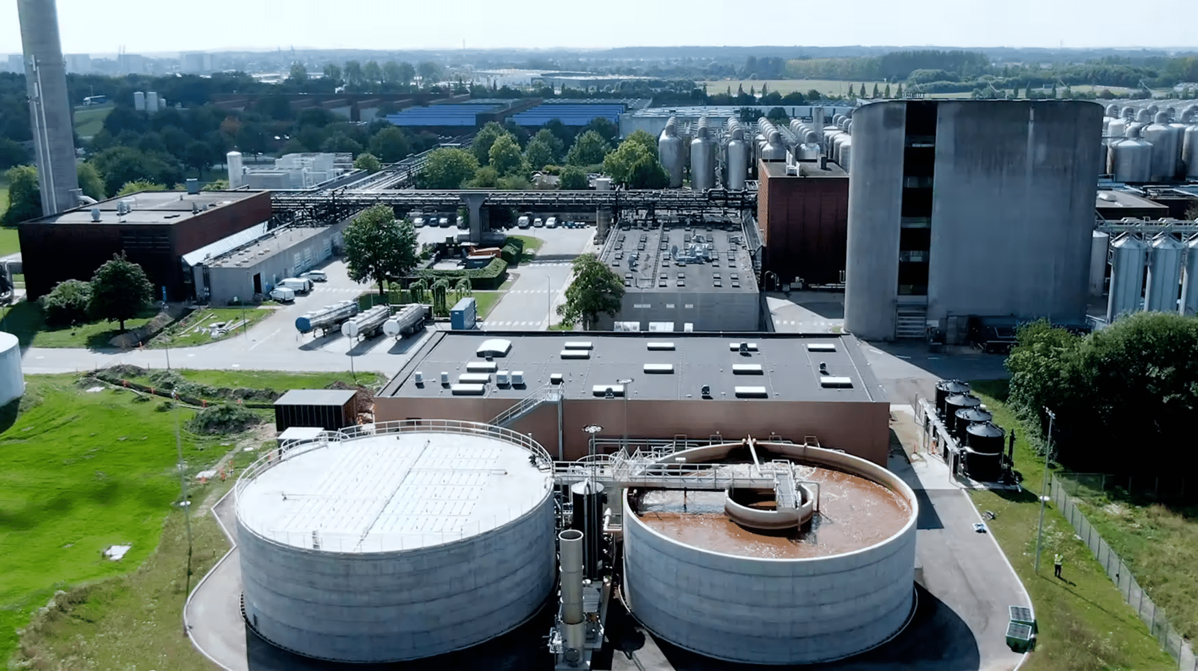 L’usine Total Water Management de Carlsberg à Fredericia, au Danemark, utilise un traitement anaérobie et aérobie des eaux usées. Le réservoir anaérobie à gauche produit du biogaz que Carlsberg utilise pour produire de la chaleur pour les processus de brassage, ajoutant ainsi un autre niveau de durabilité au projet.