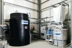 BWT France, déjà présent sur le site avec des adoucisseurs pour le traitement des eaux d’utilités, a été sollicitée pour sensiblement limiter l’impact environnemental du site, tout en réduisant sa consommation de produits chimiques. BWT ECO-MX, capable de produire sur site et à la demande une solution désinfectante fraîche par électrolyse de sel non classée pour la santé et pour l’environnement, répondait en tous points à ce besoin et a rapidement séduit le papetier.