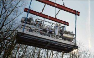 NDLR : une PAC ne produit pas de chaleur mais elle la transfère en prenant de la chaleur dans la source froide (ici l’eau de mer qu’elle refroidit) en évaporant son fluide frigorigène ; elle la restitue à la source chaude (ici l’eau de chauffage qu’elle chauffe). Son COP (coefficient de performance) est de façon simple, le rapport entre l ‘énergie qu’elle consomme pour faire ce travail, et l’énergie qu’elle transfère d’une source à l’autre (de la mer à l’eau de chauffage ici).
