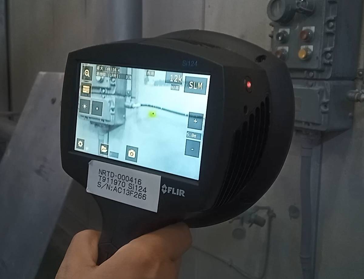 Nous avons appris que la FLIR Si124 pouvait nous aider à repérer les points de fuite même dans les environnements bruyants. Les réseaux de tuyauterie d’air circulant librement à l’usine de Mie, nous savions qu’il ne serait pas facile d’éliminer complètement les fuites, mais nous voulions nous attaquer au problème.