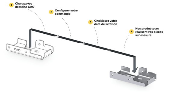 La plateforme prend ainsi en charge tout le processus de commande de pièces métalliques sur-mesure. Le devis est établi en quelques secondes, le fournisseur le plus approprié est sélectionné, et la plateforme s’assure du suivi de la commande jusqu’à sa livraison en bonne et due forme. Résultat : un énorme gain de temps et des économies substantielles, en mode “zéro prise de tête”.